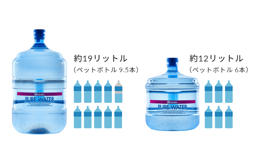 ボトルは19リットル(5ガロン)と12リットル(3ガロン)に対応しています。